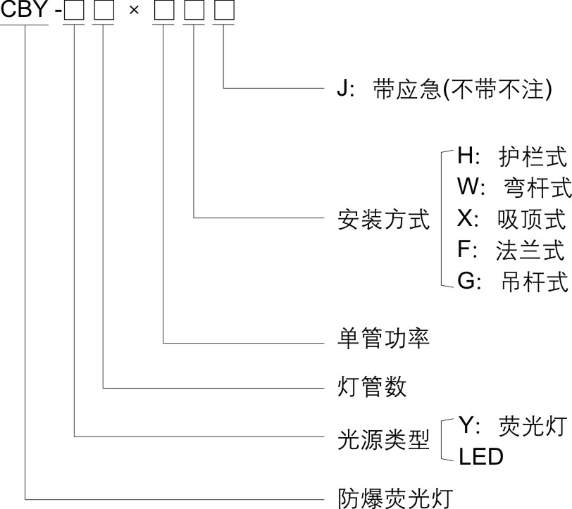 | CBY-Y1×40 | 40W | 熒光燈 | 1 | Ⅰ | 不帶應(yīng)急 |