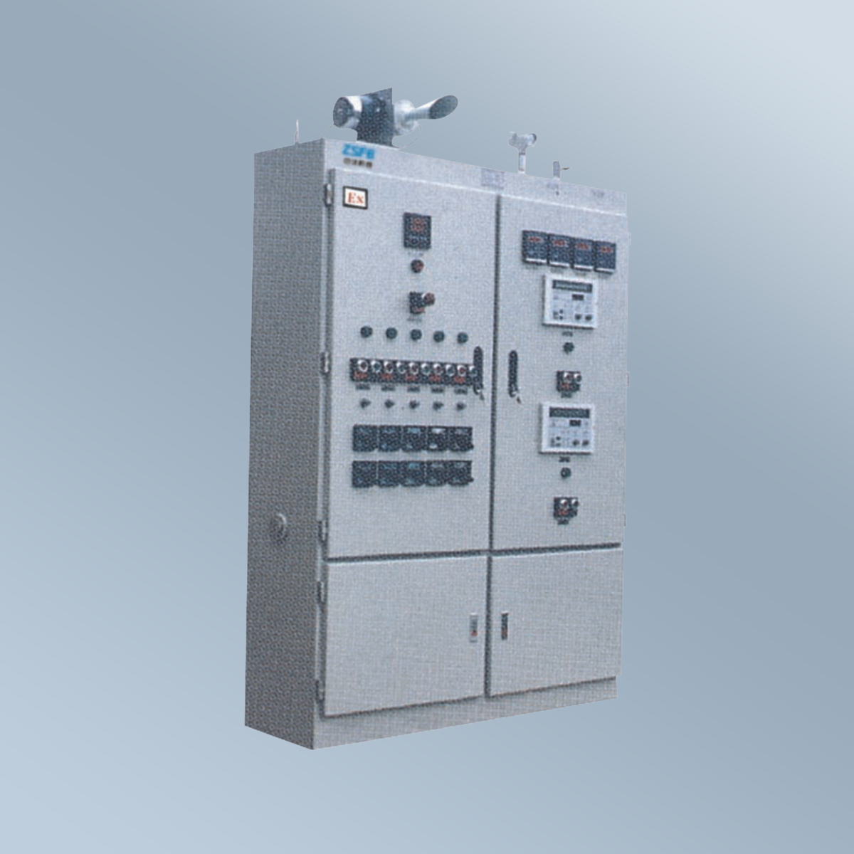 通過將多個防爆電磁起動器或起動箱和防爆斷路器、操作住和防爆接線箱等組合,可在電壓 380V 的三相交流 50Hz 的配電系統中實現動配送及電動機的集中控制,支路最大可達 160A,可根據用戶要求實現遠距離控制,并可根據要求加裝信號燈、電壓表、電流表等監控裝置;