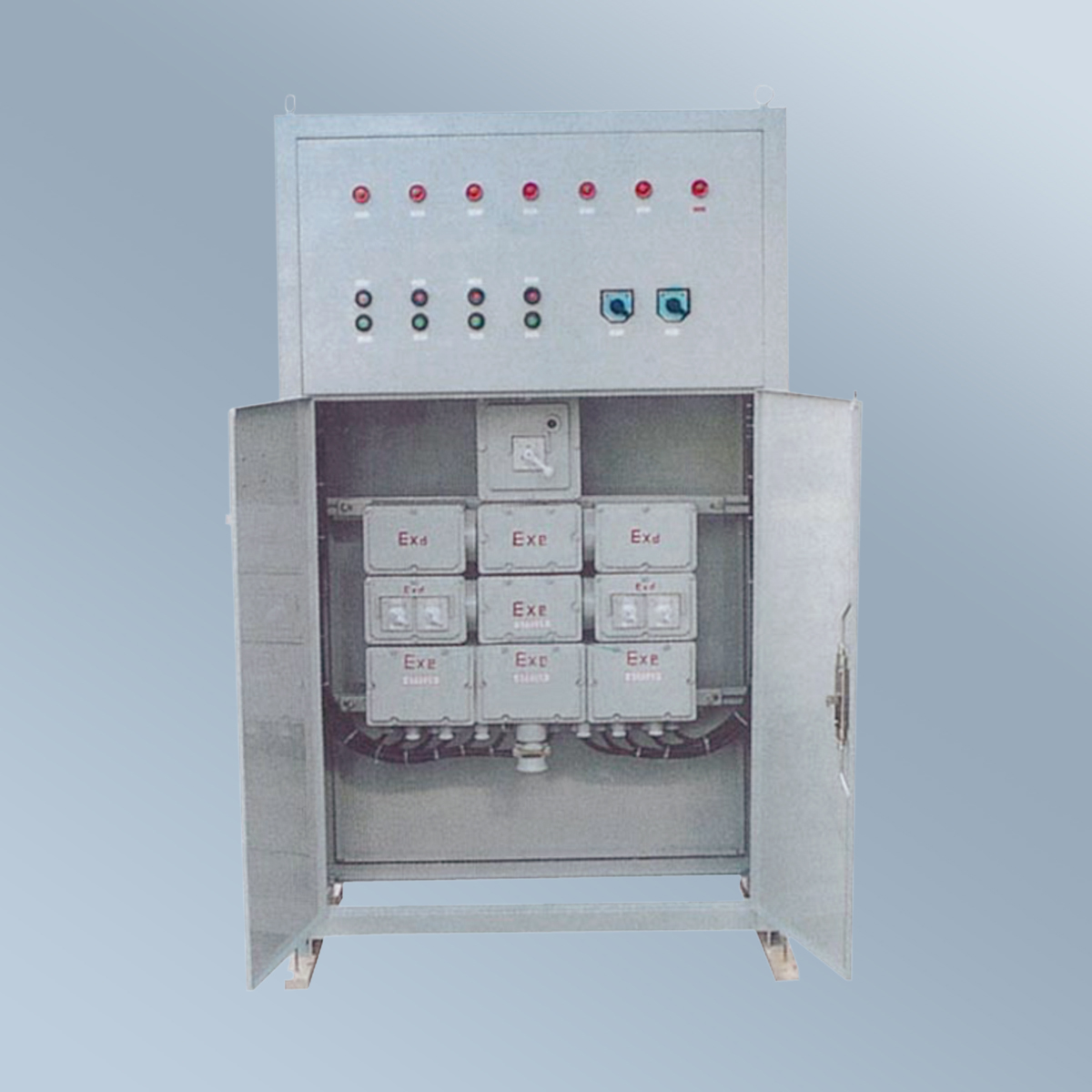 柜體外殼采用優質鋼板焊接成型,表面高壓近點噴塑。內裝各種防爆電器,可按照用戶提供的電器原理圖及主要技術參數制定配電柜的外形尺寸并選用相應的防爆電器,可根據要求制作成面板上直接操作或開門后直接操作等形式。