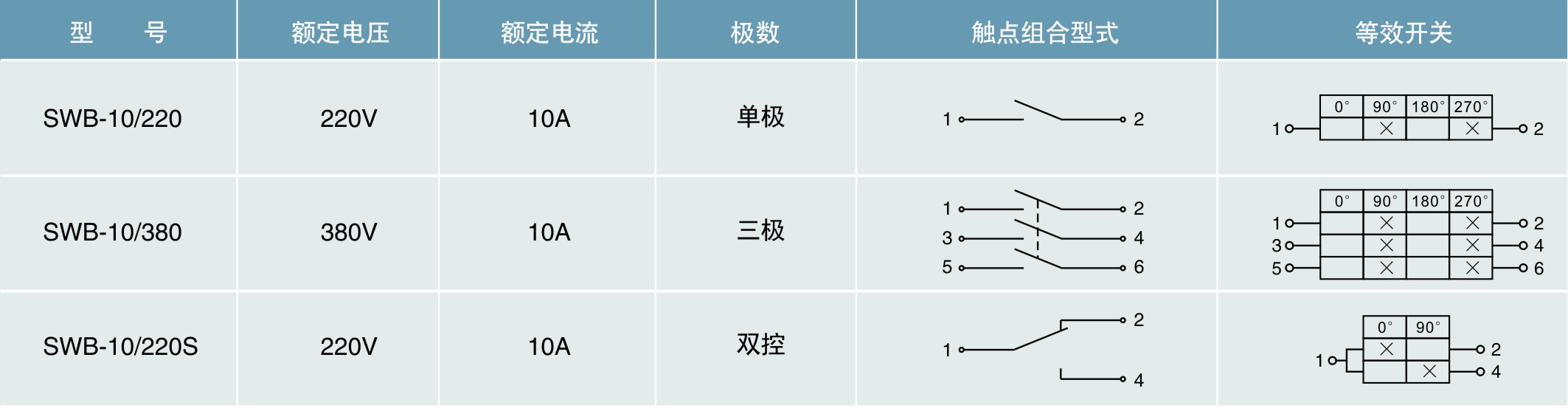 規(guī)格選型表