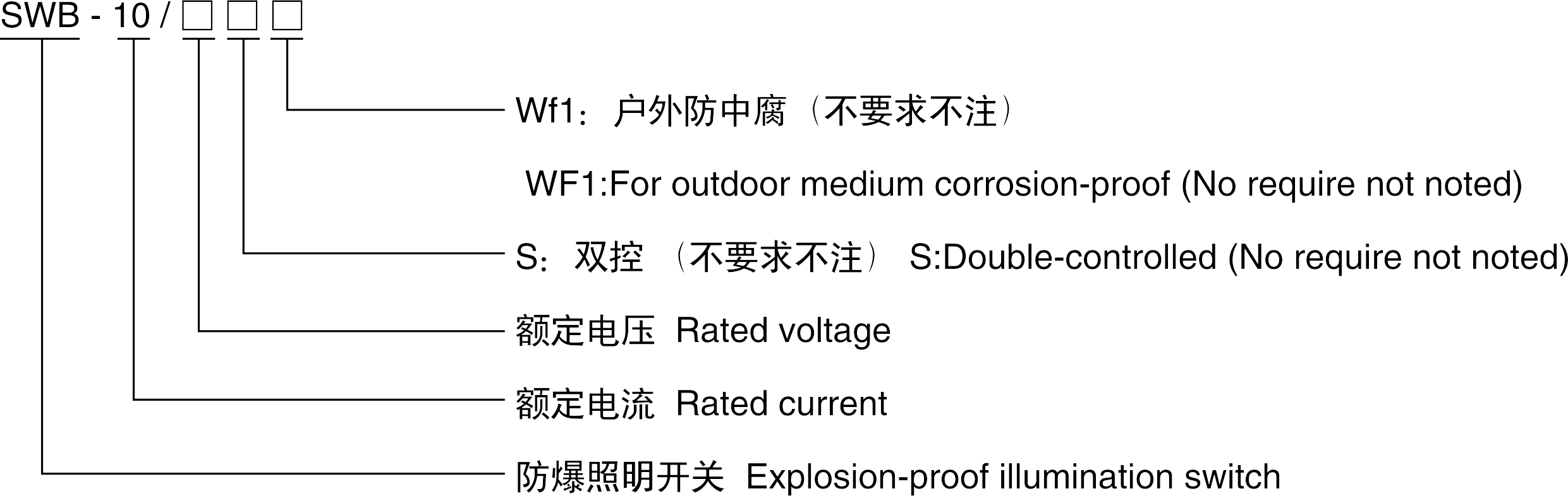 > 請(qǐng)根據(jù)“型號(hào)含義”注明所需產(chǎn)品詳細(xì)的規(guī)格,防爆標(biāo)志。