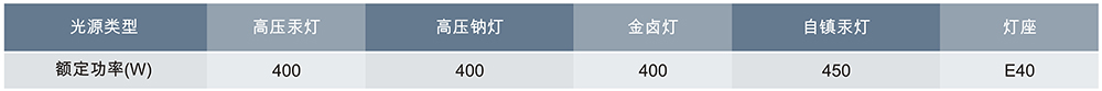 > ?可配裝白熾燈、汞燈、高壓鈉燈、金鹵燈、大功率節(jié)能燈。